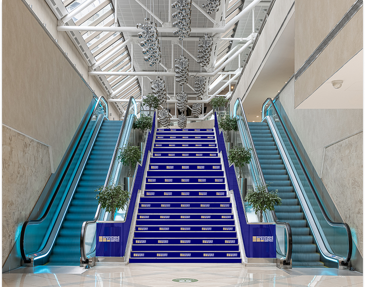 Брендирование ступеней и перил лестницы, ведущей в Plaza Garden на период проведения Конгресса с 14 по 16 октября 2025.