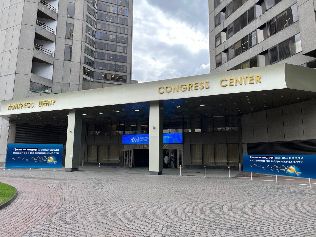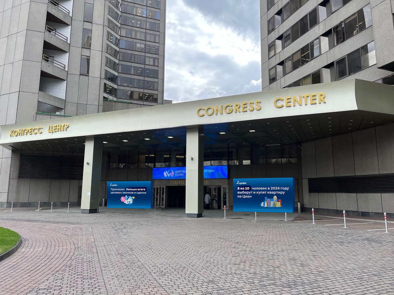 Размещение баннеров справа от главного входа в ЦМТ на период проведения Конгресса с 14 по 16 октября 2025.