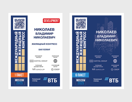 > Размещение рекламного модуля на одной из сторон бейджей участников Международного жилищного конгресса (тираж 10 000 шт.)
