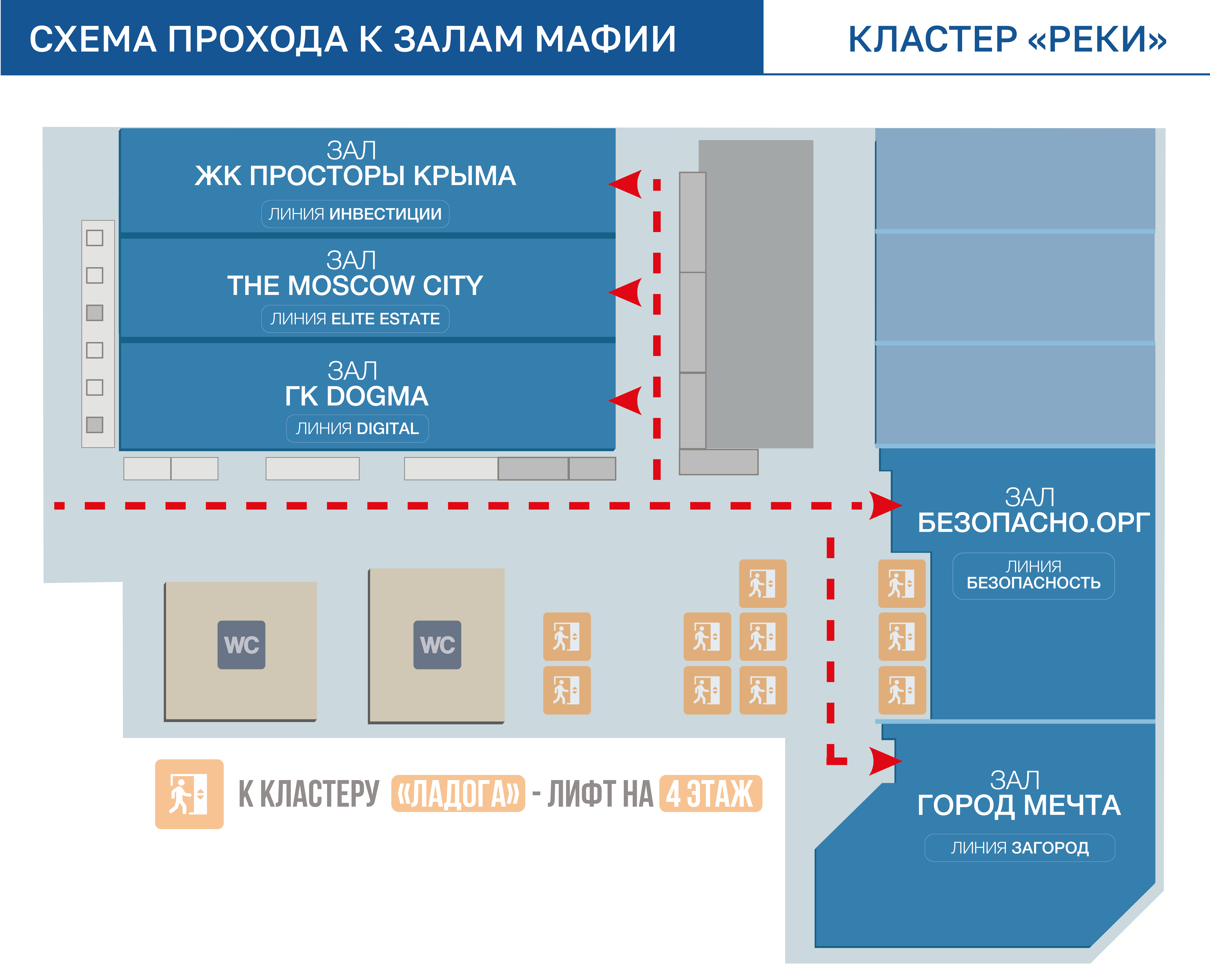 залы The Moscow City, ЖК Просторы Крыма, DOGMA, Безопасно орг, Город Мечта